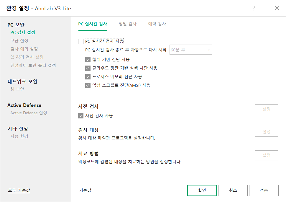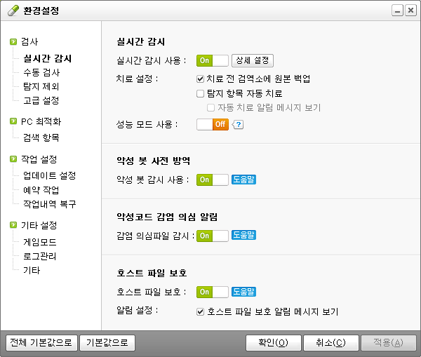 각각 프로그램으로 들어가서 실시간 감시를 "잠시" 꺼줍니다.